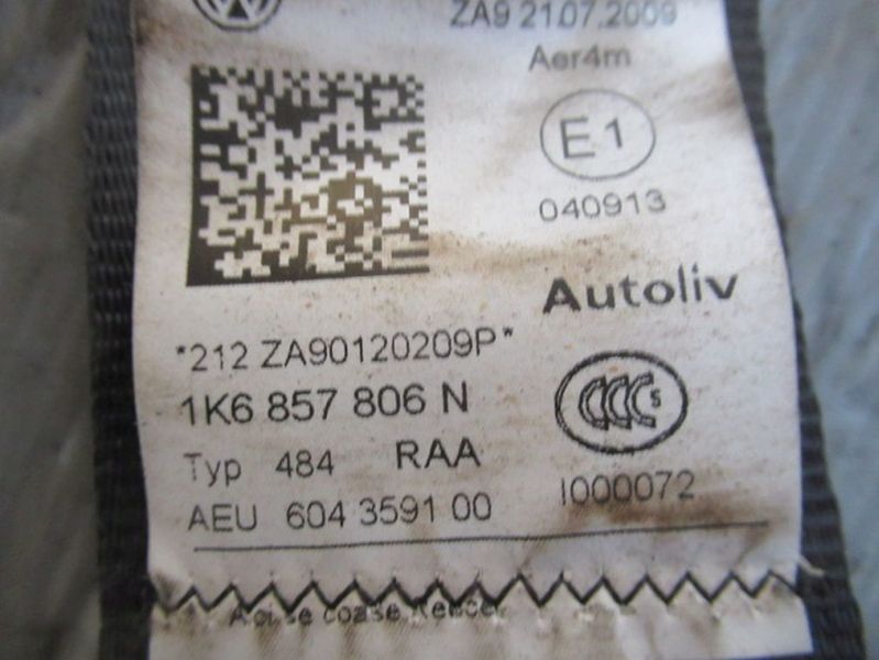 Sicherheitsgurt rechts hinten schwarzVW GOLF VI (5K1) 1.4 TSI